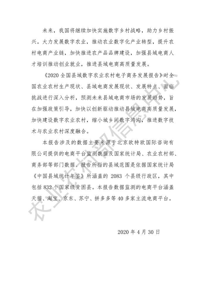 點(diǎn)擊查看完整報(bào)告:2020全國縣域數(shù)字農(nóng)業(yè)農(nóng)村電子商務(wù)發(fā)展報(bào)告.pdf