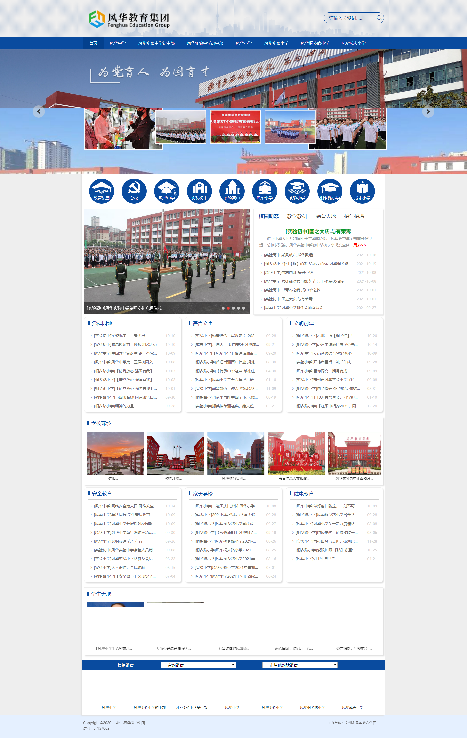 風(fēng)華中學(xué)自2008年第一次中考以來,連續(xù)13年中考成績綜合排名亳州市第一名,每年都有90%以上的學(xué)生考取省級示范高中。贏得了“管理嚴(yán)、質(zhì)量高、教風(fēng)正、學(xué)風(fēng)濃”的贊譽。先后被國家部委,省市縣區(qū)等部門命名為“中國西部教育顧問單位”、“江蘇省英語學(xué)科建設(shè)和實踐基地”、“安徽省地方稅收教育基地”、“安徽省科技創(chuàng)新試點學(xué)校”、“亳州市高校畢業(yè)生就業(yè)見習(xí)基地”;先后榮獲“亳州市民辦非企業(yè)先進單位”、“亳州市安全綜合治理工作先進單位”、“亳州市安全文明校園”、“安徽省民辦學(xué)校先進單位”、“安徽省人民防空先進單位”、“全國民辦學(xué)校先進單位”、“中國民辦教育百強”、“亳州市‘雙比雙爭’先進社會組織黨組織”、“亳州市五星基層黨組織”等榮譽稱號。